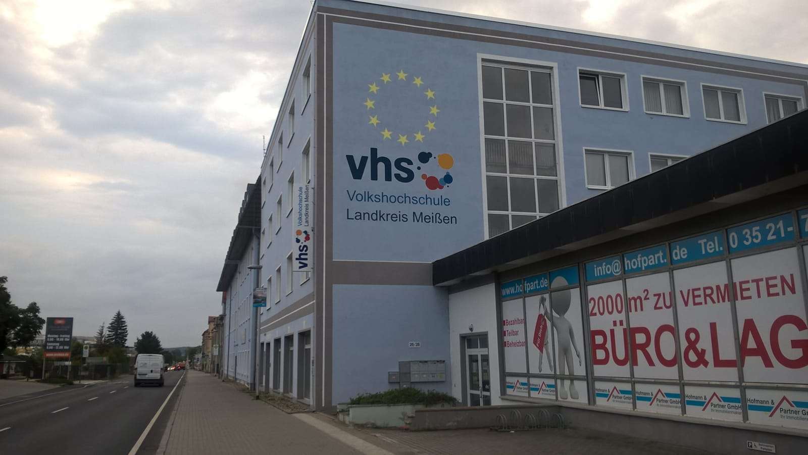 Unser Parkplatz befindet sich direkt gegenüber dem Eingang der VHS (Haus mit blauer Fassade/unter dem Logo der VHS). Den Parkplatz erreichen Sie direkt vorn im Einfahrtsbereich der Zufahrt zu ProBau Kugel. Nun brauchen Sie nur noch die Straße überqueren.