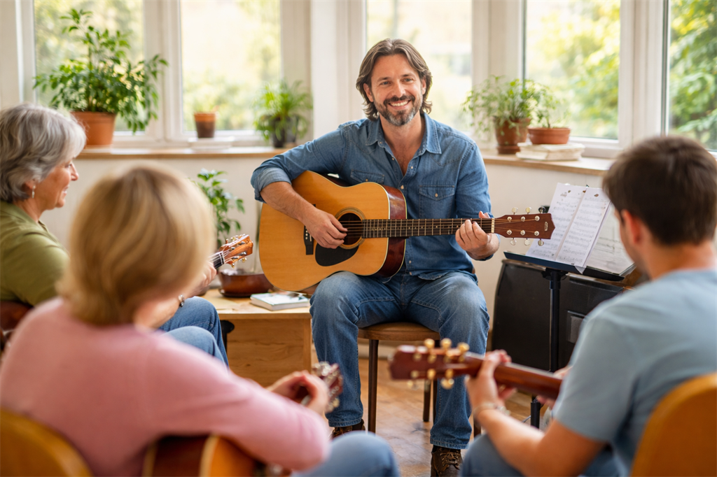Schon nach kurzer Zeit selbst ein Lied begleiten – genau darum geht es in diesem Kurs. In entspannter Gruppenatmosphäre greifen Sie zur Gitarre, lernen die ersten Akkorde und spüren sofort, wie aus einzelnen Tönen echte Musik entsteht.